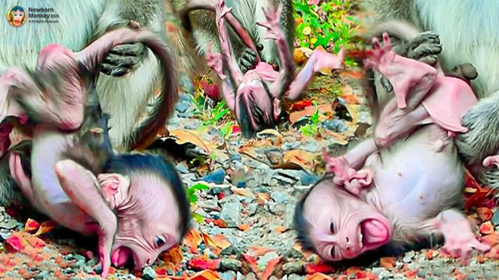 Under the soft shade of a towering tree, mother monkey Anna sat quietly, her tiny newborn clinging to her belly. The baby’s big, hopeful eyes stared up at her, mouth slightly open, waiting for the warmth and comfort of milk. But today, something was different. Anna’s face showed signs of tension, and her body remained still, almost distant, as if her mind was lost in worry.