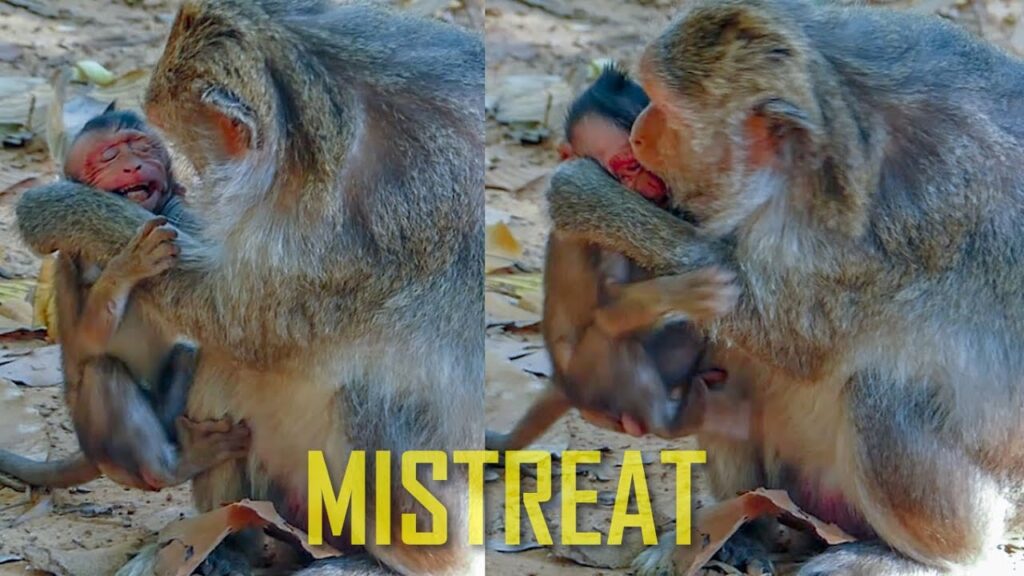 In the heart of the jungle sanctuary, a heartbreaking moment unfolded that left onlookers speechless. Baby monkey Jinx, a tiny, innocent soul barely a few weeks old, was seen sobbing loudly after being harshly mistreated by adult female monkey Jade. The scene was filled with sadness, confusion, and pain — not only for Jinx but for anyone witnessing it.