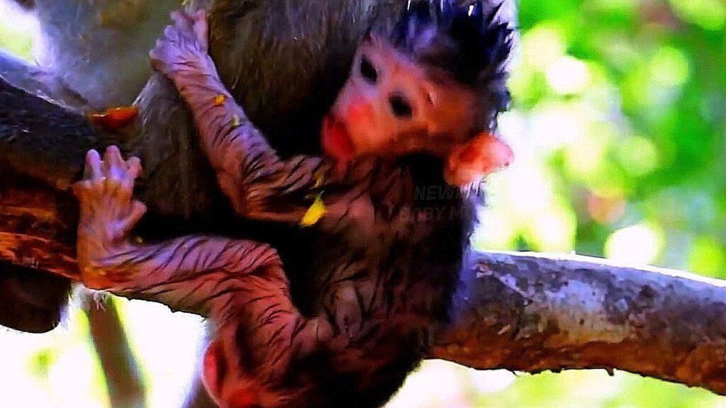 The mother monkey, though old and weaker than younger mothers, showed remarkable tenderness. She wrapped her arms around BB with great care, keeping the infant close against her fur to protect it from the cool breeze. BB needed that comfort and warmth, not only for survival but also for reassurance. The little monkey’s eyes blinked slowly, adjusting to the brightness of its new world, yet it found peace in the steady heartbeat of its mother.