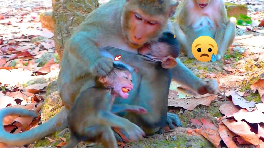 In the peaceful morning light, the tiniest baby monkey was happily exploring near the troop, his small hands touching leaves and stones with innocent curiosity. Suddenly, an unexpected and heartbreaking moment broke the calm scene. A b-a.d female monkey, older and much stronger, rushed toward the little one with fierce energy. Without any reason, she grabbed the baby harshly, shaking him as he let out tiny cries that echoed through the forest. The poor little one didn’t understand what he had done wrong — his only fault was being too small and too weak to defend himself.