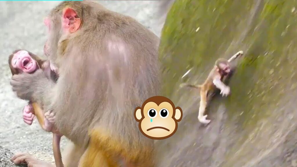 In a heartbreaking and shocking moment captured deep in the forest, an unscrupulous mother monkey made an unthinkable move—pushing her helpless baby down a small cliffside ledge. The scene unfolded in front of a group of nearby monkeys who watched in stunned silence, too afraid to intervene.