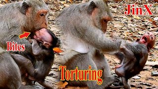 Other monkeys nearby stopped to watch. Some showed signs of concern, tilting their heads or moving closer, but none dared to interfere. The forest, usually full of playful sounds, felt heavy with tension. Jinx collapsed on the ground at one moment, exhausted from crying, only to struggle back up again when Jade moved away. His spirit was small but stubborn, driven by instinct to survive.