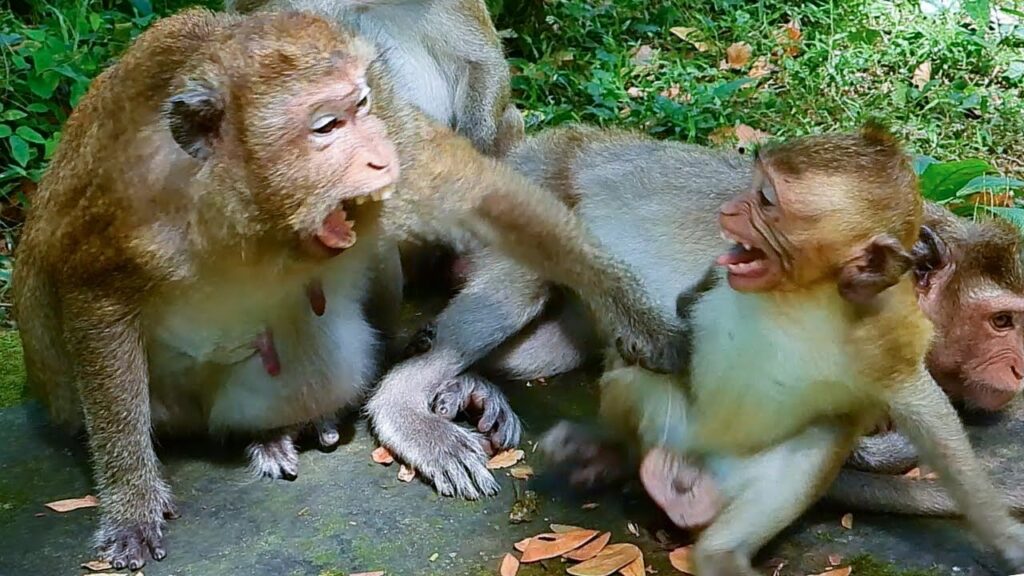 The other monkeys in the troop continued moving through the trees, searching for fruits and leaves. Life in the forest never pauses for long. Dito slowly tried to follow them, even though he still sniffled and cried softly. Daisy kept an eye on him the whole time. Even when she looked strict, she was still protecting him from danger. 🌿