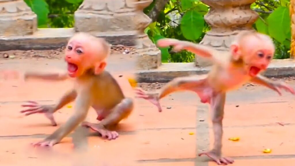 Kimo suddenly jumped up, stamping his tiny feet on the ground. His little arms flung in every direction, and he let out a sharp cry that echoed through the trees. It almost looked like a wild dance—his body twisting, spinning, and shaking as if he was trying to force the world to hear him. Some of the older monkeys glanced over with concern, while the young ones watched him in confusion, unsure if he was angry, scared, or simply overwhelmed.