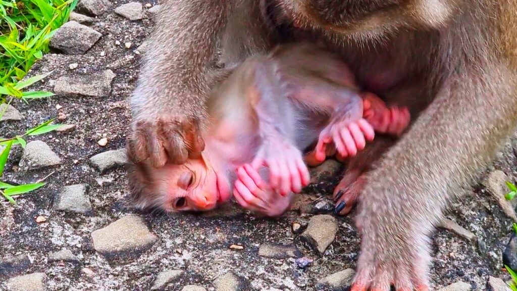 Little newborn baby monkey Jacee was having a quiet morning nestled beside his mother, Joyce. But something seemed unusual today—Joyce kept looking closely at Jacee’s tiny face, gently touching around one of his eyes. The concerned mother appeared restless, constantly checking her baby’s eye as if she sensed something was wrong.