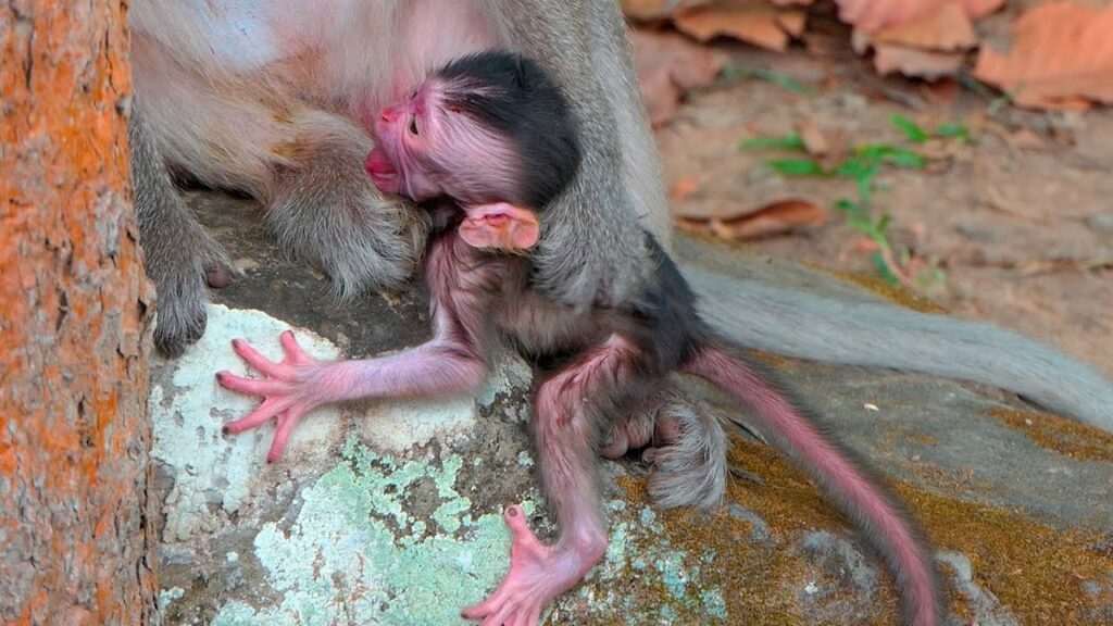 Newborn monkeys often whimper for several reasons. They might be hungry, cold, or just looking for comfort and warmth. Sometimes they cry because they are trying to learn how to communicate with their mother. This gentle crying is their way of saying, “I am here. I need you.” Slowly, as the baby grows stronger, it will begin to understand its mother’s presence and the sounds of the forest around it. 🐾