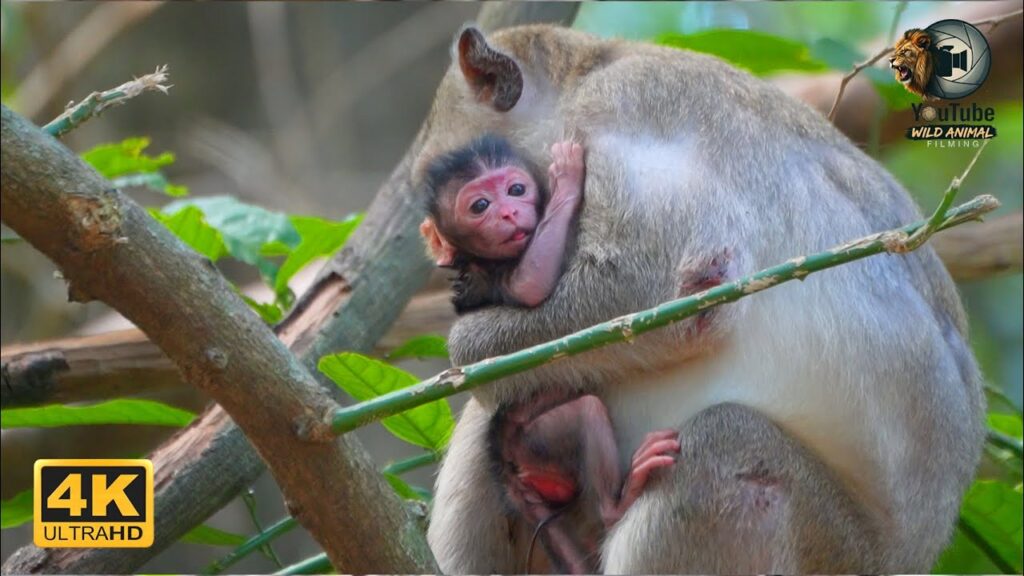Other monkeys nearby seem to sense the importance of the moment. They watch from a distance, giving Jazzy space as she bonds with her newborn. The forest feels calmer, as if respecting the fragile beginning of a new life.