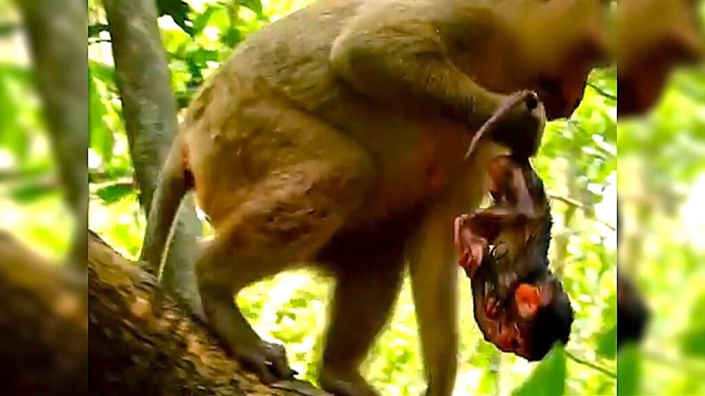 It was a heartbreaking moment in the forest when a young mother monkey gave birth to her first baby. The newborn was still wet, eyes barely open, and completely dependent on the warmth and comfort only a mother can provide. But sadly, the young mother seemed confused and unsure. She had no idea how to hold her tiny baby, and her inexperience showed with every clumsy movement.