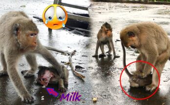 In a heart-wrenching moment that left onlookers in shock, a newborn baby monkey tragically fell from a towering tree, nearly 50 meters high. The tiny creature, no more than a …