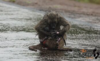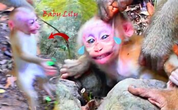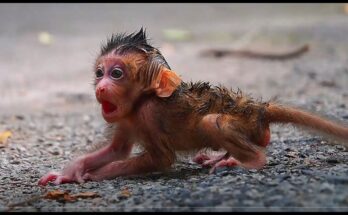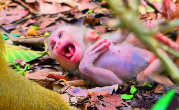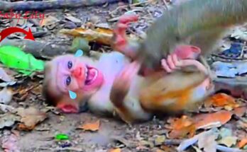 In a quiet corner of the forest, a heartbreaking scene unfolded. A mother monkey, perched on a low branch, clutched a piece of fruit tightly while her infant whimpered beside …