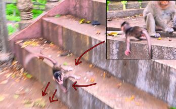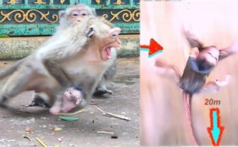 A heartbreaking scene unfolded today when a tiny newborn baby monkey suffered a fall due to the lack of care and attention from both the mother and the grandmother. The …