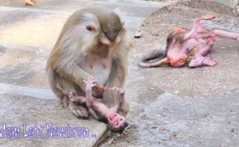 Mother monkey abandons baby monkey after birth, leaving baby monkey crying alone on the ground! Read More