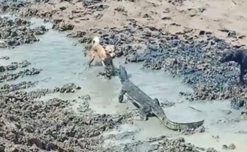 In the quiet outskirts of a remote Indonesian village, an alarming scene unfolded when a group of stray dogs encountered a massive Komodo dragon. The dogs, sensing a territorial threat …