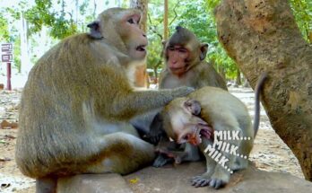 Milk… Milk.. O.M.G Monkey Dito Crying Very Spoil Begging Milk, Why Dito So Spoil Like This? Tiny baby monkey Dito was once again the center of attention in the troop. …