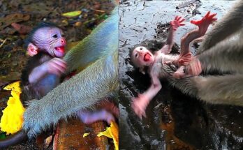 Shocking Heart Tinny Baby Monkey Crying Because Mommy Careless It In the peaceful morning light, the jungle echoed with the heartbreaking cries of a tiny baby monkey. The sound was …