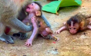 OMG….The Poor Twin Monkey Got Scared And Crying Hungry Milk Now / They Look So Pitiful Read More