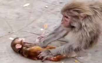 In the quiet forest, where the trees swayed gently with the wind, a heartbreaking scene unfolded that left many who witnessed it in deep sorrow. A pregnant monkey, heavy with …