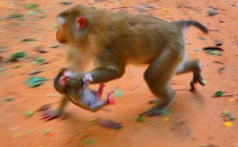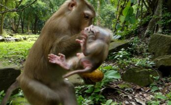 The quiet forest turned tense today as a heartbreaking scene unfolded between Luna, a young mother monkey, and her tiny newborn, Baby Lynx. At first, the pair looked inseparable—Luna clutched …