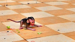 • GOD Save ! Million sad & heart broken baby monkey Button fall down from tree & lost consciousness