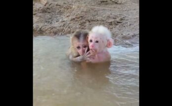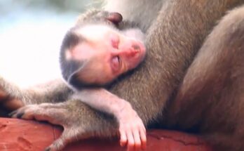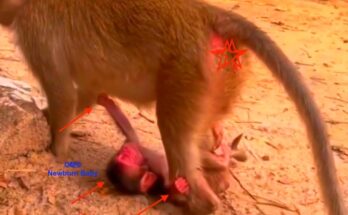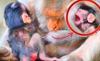 In the heart of the forest, a truly beautiful scene unfolds as an old mama monkey tenderly welcomes her new baby into the world. Her face may be lined with …