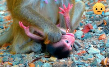 A sad scene of a newborn baby monkey. Why does mom do this to the baby, no mercy like this.? Read More