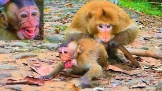 A sad scene of a newborn baby monkey. Why does mom do this to the baby, no mercy like this.?
