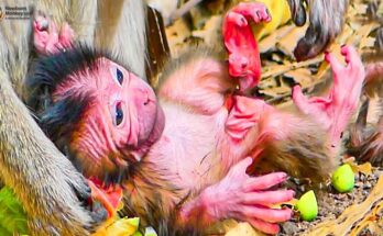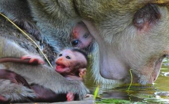Precious First Steps! Newborn Monkey Tries Walking with Young Mom Dakota by Her Side Read More