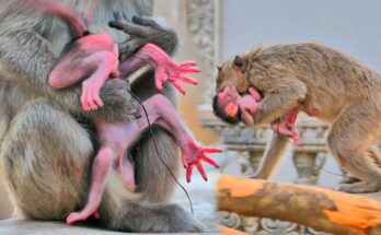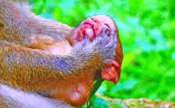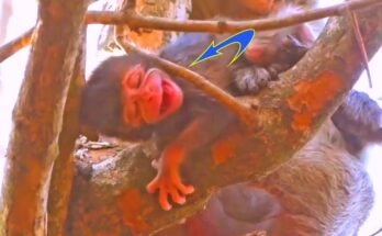 In the middle of the warm afternoon, the peaceful forest echoed with a soft cry—a tiny newborn baby monkey had just entered the world. The young mother, barely experienced, was …