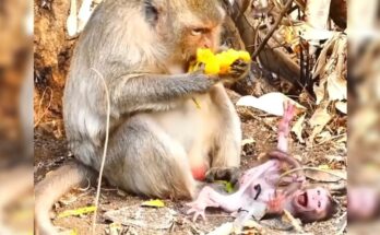 Newborn Monkey Follow Asking milk Mama Mama doesn’t care about her Baby Read More