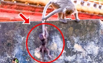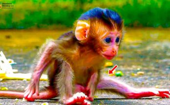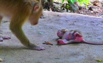 In a quiet corner of the forest, a fragile newborn monkey stumbles behind his mother, his tiny feet barely keeping up. His eyes are wide with confusion and desperation, and …
