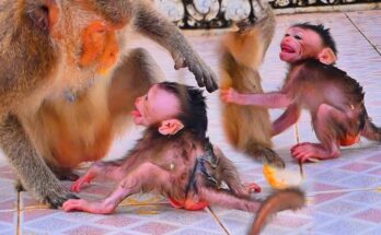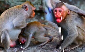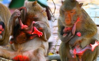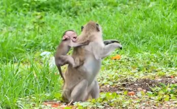 In a quiet forest clearing, the camera captures an emotional moment between a baby monkey and his mother. The tiny baby, full of energy and affection, wants nothing more than …