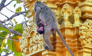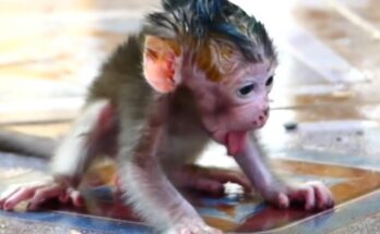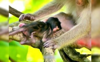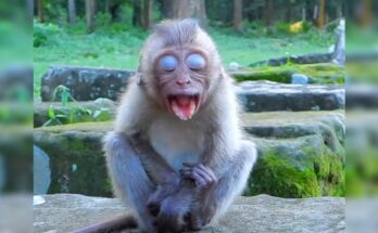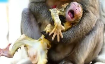In the quiet warmth of the forest, a curious and playful moment began to unfold. A big monkey, full of energy and excitement, spotted a tiny newborn cradled gently in …