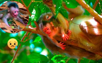 In the wild, the first moments of life are always full of challenges. Today, a heartbreaking yet touching scene unfolded high up in the branches. A tiny newborn monkey, still …