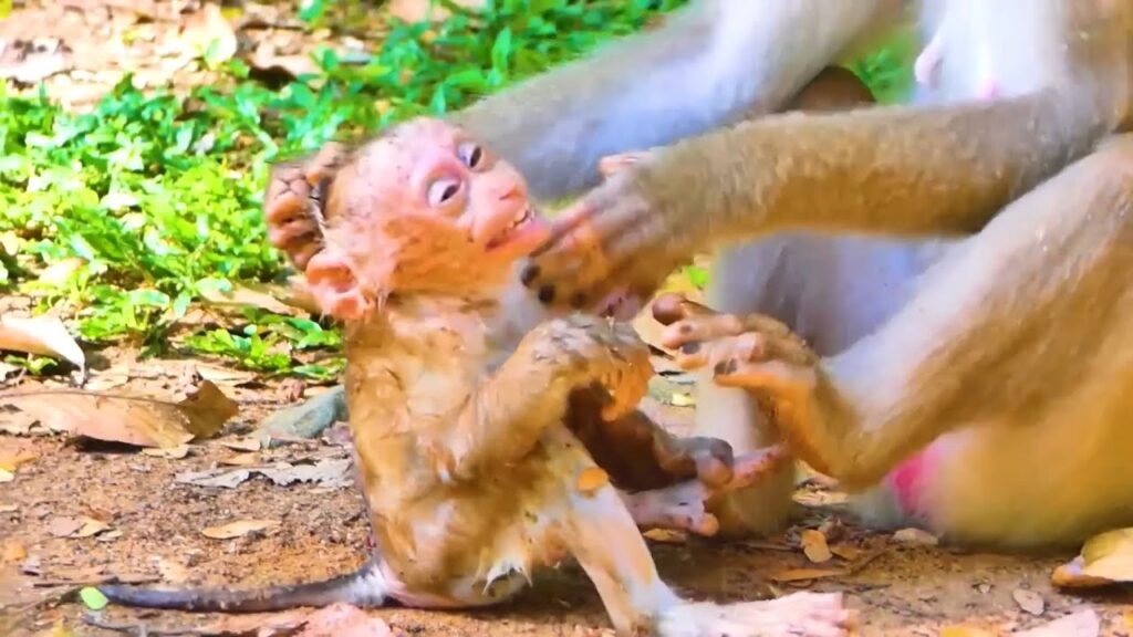 The jungle was quiet, but one small cry broke the calm — a heartbreaking sound coming from a tiny baby monkey named Nilo. His big round eyes were filled with tears as he looked up at his mother, Tima, who had just scolded him gently for wandering too far from the troop. Tima didn’t mean to hurt him — she only wanted to teach him right from wrong. But little Nilo, so young and tender, couldn’t understand why his loving mother had suddenly raised her voice.